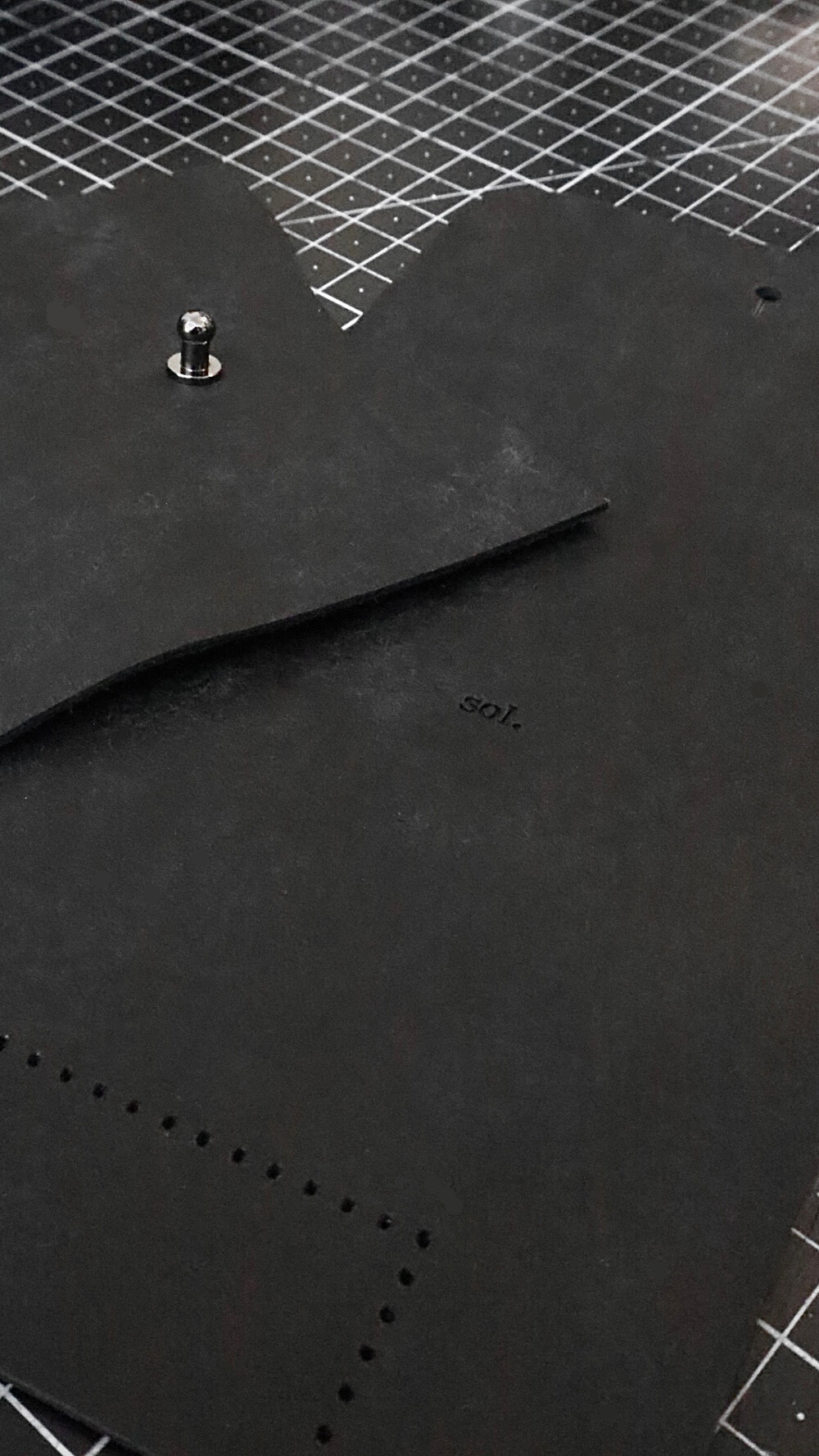 가죽을 접어 바느질 하여