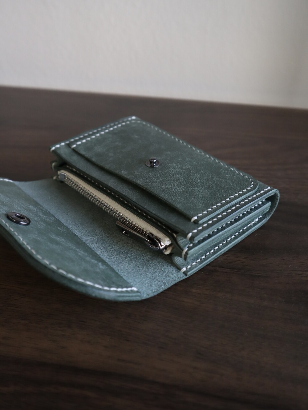 (가죽과 동일한 색상의 실을 사용한 모습입니다.)